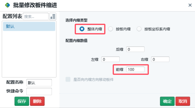 批量修改板件缩进
